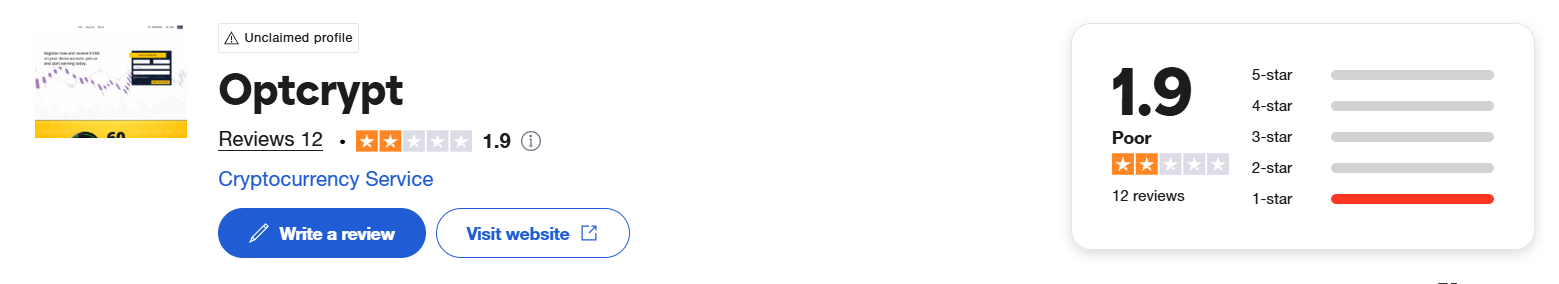 Let’s talk about Trustpilot — one of the few places where users can leave public reviews, and where shady projects usually get caught slipping. So we looked into how Opt Crypt is doing there. And yep, you guessed it — the story isn’t adding up.